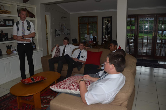 Our new elders have had a full day! After the temple site they went to the office to learn about their boardings, take a driving test (on the left side!), go proselyting, and have an interview with President Thompson! They have been up early, so by now they are starting to get tired! But usually food helps, so I have prepared dinner, and then we will have testimony meeting, and assignments will be declared!